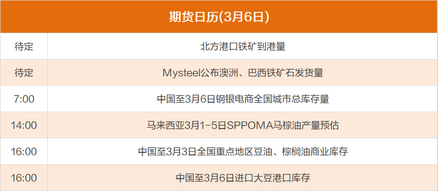 东方财富期货财经早餐 3月6日周一
