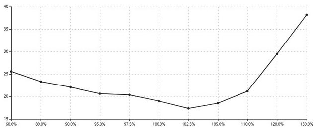 相对于与价格的关系,隐波与行权价之间则表现出平值期权隐波相对较低,同时随着期权实值或虚值程度的加深,相对应的隐波也在逐步扩大的隐含波动率微笑属性。