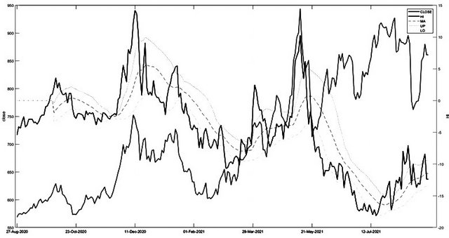 以上展示了动力煤价格与IV-HV差值之间的关系,可以看出标的上涨过程中伴随着 IV-HV 差值的上涨,但当 IV-HV差值较高时,标的接下来出现下跌的可能性较大;标的的下跌过程伴随着 IV-HV 差值的下跌,但当 IV-HV 差值较低时,标的接下来出现上涨的可能性较大。