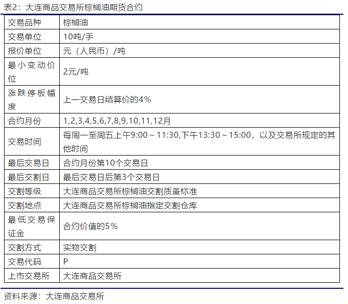棕榈油期货期权合约对应的标的交割物为棕榈油期货,两者都是10吨/手。