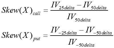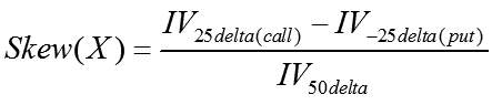 除此之外,也可以混合使用看涨期权和看跌期权,这主要取决于波动率曲线构成。偏度计算方法如下: