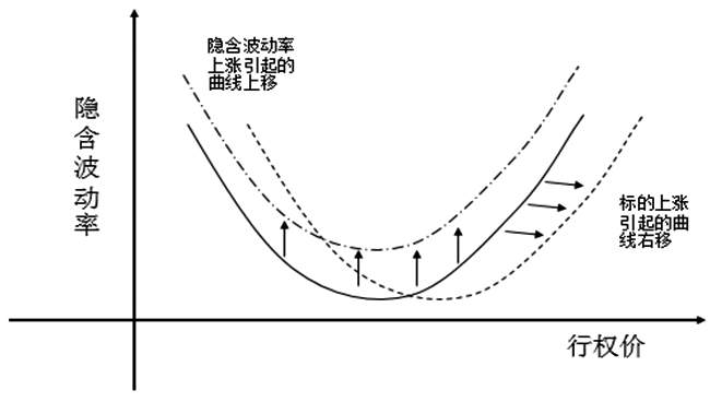 图为波动率和标的上涨引起的曲线变化