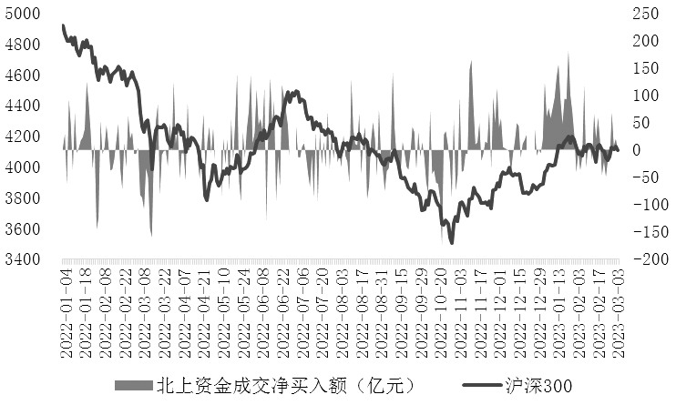 图为沪深300走势与北上资金变动 展望3月,在3月23日议息会议之前,2月非农数据(3月10日公布)和通胀数据(3月14日公布)尤为关键,建议重点关注。值得注意的是,尽管两年期美债和十年前美债近期持续反弹,但距离5%仍有一定距离。若美联储真如市场预期,连续3次加息25bp,那么目标利率将至5.25%—5.5%,美债收益率也将继续上行。十年期美债收益率作为全球资产定价之锚,其上行预期势必影响A股估值和北上资金流入。