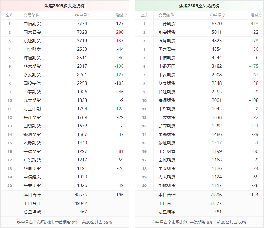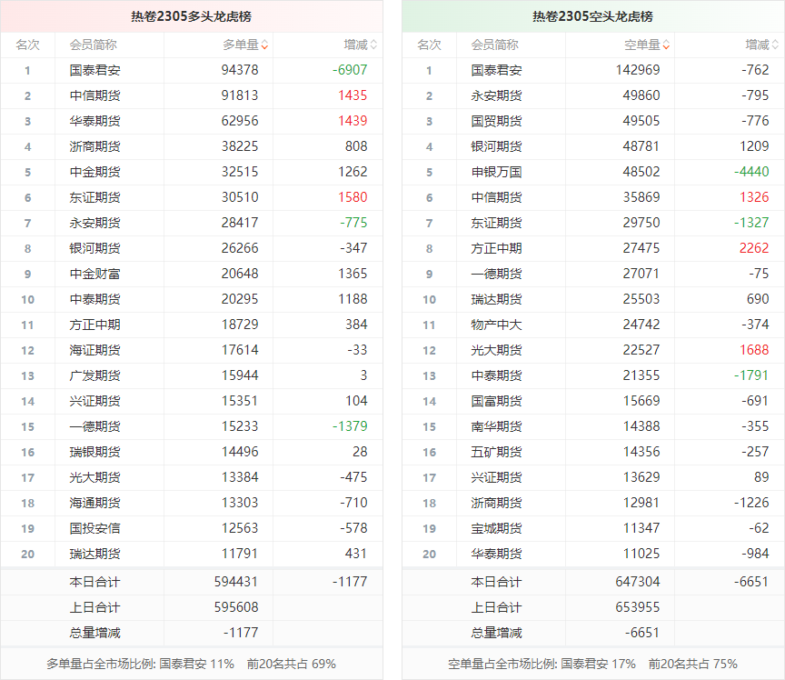 截至3月8日收盘,螺纹钢2305收4249/吨,涨0.26%;热卷2305收4341/吨,持平;铁矿石2305收912元/吨,涨0.83%;焦炭2305收2894/吨,跌0.87%;焦煤2305收1984元/吨,涨0.13%。 螺纹钢2305合约前20席位多单增仓14945手至124.1万余手,空单增仓1825手至131.2万余手。其中,华泰期货多单增持13703手,空单增持92手,整体呈净多94792手。 各品种具体如下: ![]() (来源:东方财富期货PC端) 各品种持仓情况具体如下: ![]() ![]() ![]() ![]() ![]() (文章来源:东方财富研究中心) (责任编辑:admin) |