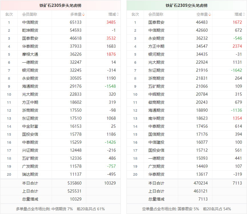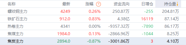 黑色持仓龙虎榜:铁矿石涨0.83% 华泰期货增持超1.3万手螺纹多单
