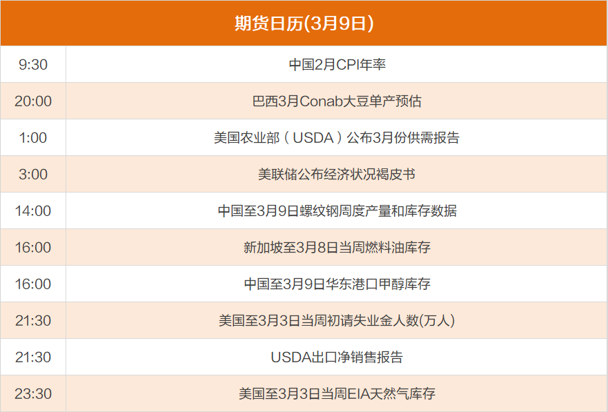 东方财富期货财经早餐 3月9日周四