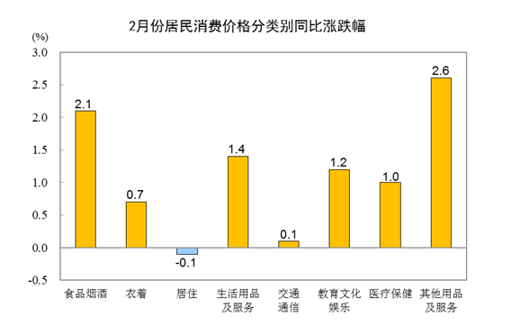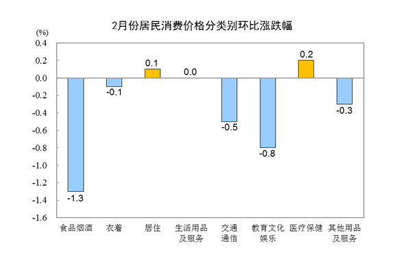 国家统计局:2月CPI同比上涨1% PPI同比下降1.4%