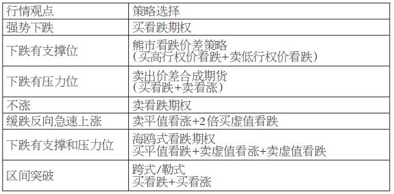 以上是对上涨行情中的期权策略选择进行举例分析,在下跌行情中,可以看跌期权为主,也能构建类似的策略。