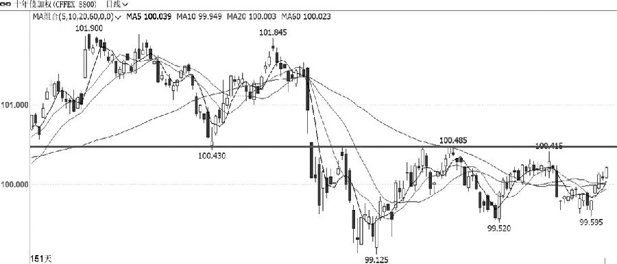 IC加权本周价格延续高位振荡整理,下方暂时未能跌破6200点一线支撑。量能方面,本周振荡整理过程中成交量变化不大,持仓量先增后减。指标方面,均线系统现在整体处于水平走势,MACD指标快慢线继续向零轴回落靠拢。综合来看,IC加权本周价格延续高位振荡整理,价格选择突破方向之前,建议继续保持观望。 十债 突破压力