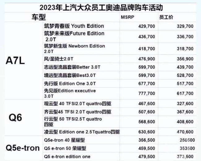 今年年初,一只叫“特斯拉”的蝴蝶扇动了翅膀,几个月后,整个汽车行业都掀起了降价风暴。 近期,宝马旗下纯电动车型宝马i3就推出了优惠促销活动,据多家宝马4S店的经销商表示,最高优惠幅度可达10万元。除此之外,一份《2023年上汽大众员工奥迪品牌购车活动》的图片也在网上流传,对奥迪旗下三款产品给出了7万-16万元的员工购车优惠。 3月9日,比亚迪汽车官方微博也显示,比亚迪海洋网两大主力车型宋PLUS和海豹开启专项限时营销活动,优惠幅度在6800元到8800元。 就连“BBA”和比亚迪都没能独善其身,足以证明这场价格战的激烈程度。按理想汽车CEO李想此前接受媒体采访时的说法:“2023年到2025年这三年时间是极为残酷的淘汰赛。” BBA加入“价格战” 最近有网友总结出了汽车降价潮的规律:“越难卖的车,降价就越狠。” 如果说宝马3系在燃油车是当之无愧的明星车型,那么宝马i3想做的就是“电动车领域的宝马3系”。不过在中国市场,宝马i3无论是第一代还是第二代上市以来的成绩都不算理想。 2022年7月,宝马官方宣布第一代宝马i3正式停产。据了解,该款车型距离2013年发布至今已有9年时间,全球累计销量超过25万辆。停产后,宝马在中国市场推出了全新一代的宝马i3,在续航等多个方面都进行了升级。 整个2022年,宝马i3在华销量为1.3万辆,其中2022年12月的销量高达6140辆,几乎占到了全年的一半。当然,销量的突然增加不是没有原因的,在去年宝马i3就开启了“挥泪大甩卖”模式。 去年12月,就有媒体报道称,宝马i3在河北部分4S店降价金额达10万元。当月,成都有网友晒出的报价单显示宝马i3 eDrive35L的裸车价已经降到23.99万元,比当时34.99万元(如今为35.39万元)的官方指导价降低了11.4万元。 所以,宝马i3实际上并非是在今年才开启大幅降价,早在去年12月就因为降价提振了一波销量。 而今年3月,奥迪也推出了“员工购车”活动,针对奥迪A7L、Q6、Q5e-tron等车型给出7万-16万元的员工优惠。对此,奥迪回应称:“员工内购活动属实,正在严查信息外泄。若有员工倒卖资格,一经发现会追查到底。” ![]() 大幅优惠的背后也是汽车的销量危机和库存压力。据乘联会销量数据显示,上汽奥迪上述三款主销车型在1月份累计销量仅有618辆,其中奥迪A7L销量为304辆、奥迪Q6为244辆,奥迪Q5e-tron为70辆。 奥迪和宝马都以不同的方式、在不同的时间加入到了这场“汽车价格战”,那同为BBA的奔驰自然也不能幸免。 近期有消息称“北京地区奔驰C级车降价11万元”,对此,记者以消费者身份联系了相关4S店,对方表示:“假的,谁发的图片你找谁买去。”据了解,目前北京的奔驰4S店对奔驰C级车优惠普遍在6万元左右,E级车普遍优惠在5万元左右。 比亚迪也促销,新能源汽车行业价格战激烈 3月9日,比亚迪汽车官方微博发文称,比亚迪海洋网两大主力车型宋PLUS和海豹开启专项限时营销活动。据了解,比亚迪宋PLUS车系下订可享88元抵扣6888元购车款,海豹下订可享88元抵扣8888元购车款,活动时间持续到3月31日。 今年2月底,曾有媒体报道称,比亚迪启动了“年内首次降价”,北京、上海、深圳多地的比亚迪展厅王朝系列产品启动优惠方案,老款车型优惠幅度在万元上下,交车周期也进行了缩短。 但记者当时以投资者身份致电比亚迪,相关工作人员表示:“目前我们官方没有要降价这一说。”该人员表示,2021年款的比亚迪汉,可能是经销商为了去库存推新款而优惠,比亚迪并未开启全面降价。 不过今年以来,碳酸锂价格持续下滑,给新能源车企提供了降价空间。据数据,截至3月9日,国产电池级碳酸锂均价为34.65万元/吨,较2022年11月56.75万元/吨的高点下滑超20万元/吨,跌幅接近39%。 目前对新能源汽车来说,动力电池大概能占到40%-60%的成本,而碳酸锂今年一度占到动力电池成本的一半。因此,碳酸锂价格的下跌将显著降低车企的造车成本,让车企有降价的空间。 也有市场观点认为,此次汽车行业全面降价潮的到来是受新能源汽车大幅降价的影响,而特斯拉是率先打响价格战的新能源车企。今年1月6日,国产特斯拉全系降价,最高降幅达4.8万元,降价后Model 3和Model Y两款车型价格均创下史上新低。此后,问界、小鹏等多家车企跟随特斯拉降价。 “比亚迪和特斯拉的降价潮是一个典范,可以让更多的新能源汽车企业意识到锂价走低给他们带来的利好。未来预计还会有更多的汽车企业加入到降价大军中来。”独立经济学家、财经评论员王赤坤接受记者采访时表示。 全面降价潮已至,涉及近30个品牌 今年3月,湖北省当起了“卷王”,联合多家车企推出政企购车补贴,东风系汽车成为补贴主要对象,包括东风本田、东风雪铁龙、东风日产、东风风神、东风标致等,补贴幅度最高9万元,活动时间截止到3月31日。 其中,降价幅度最高的是东风雪铁龙,如东风雪铁龙C6共创版的参考指导价是21.19万元,湖北直接联合车企补贴9万元,补贴后12.19万元。有消费者调侃称:“20多万的C6老气横秋,12万的C6成熟稳重”。 为何湖北要对东风、别克等车企或品牌的相关车型给予大额补贴?中欧协会智能网联汽车秘书长、汽车分析师林示接受记者采访时曾表示,湖北补贴的都是在当地有工厂的车企,政府补贴更多是回馈企业,让企业能够在1个月时间内迅速消化库存,在清明节轻装上阵,恢复正常的生产、营销节奏。 对于大幅降价,东风标致有关人士向媒体表
