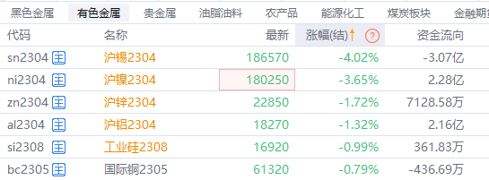 行情异动 | 沪镍主力合约触及18万元/吨 创2022年11月8日以来新低 东方财富研究中心 03月10日 截图时间:10:15 沪镍主力合约触及18万元/吨,日内跌近4%,创2022年11月8日以来新低。沪锡主力合约日内跌幅扩大至逾4%,现报186420元/吨,为2022年12月2日以来新低。(文章来源:东方财富研究中心) (责任编辑:admin)