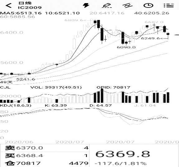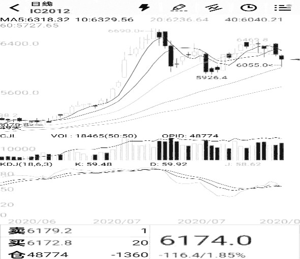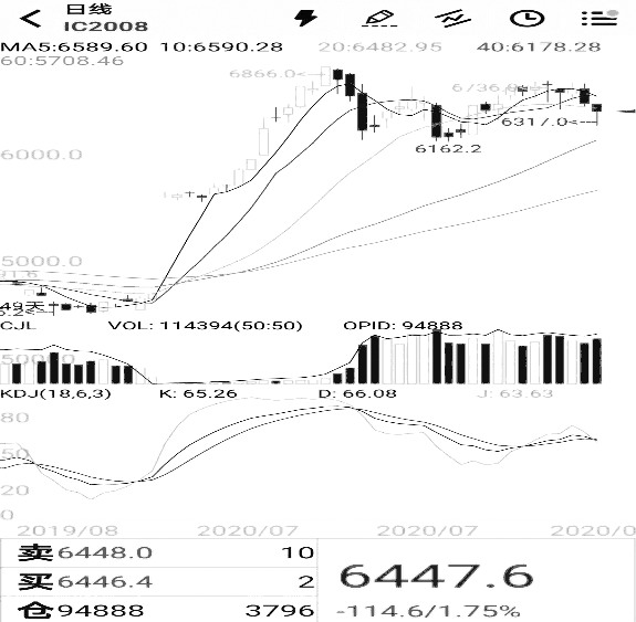 图2为近月合约IC2008的走势和收盘价