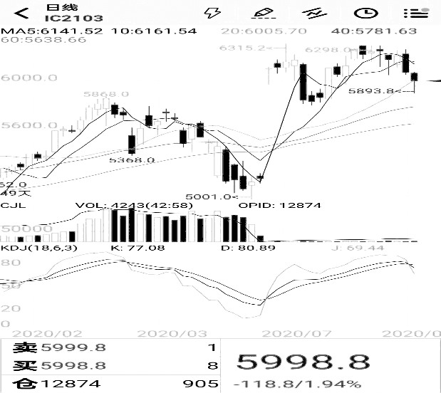 图5为远月合约IC2103的走势及收盘价