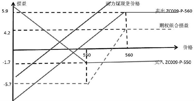 对于电厂而言,如果执行价为550的9月看跌期权可以锁定库存价值,不让库存贬值;如果煤价上涨超过550元/吨,可以不行权。这时候电厂需要卖出一个执行价更高的看跌期权,构建牛市看跌期权价格组合。
