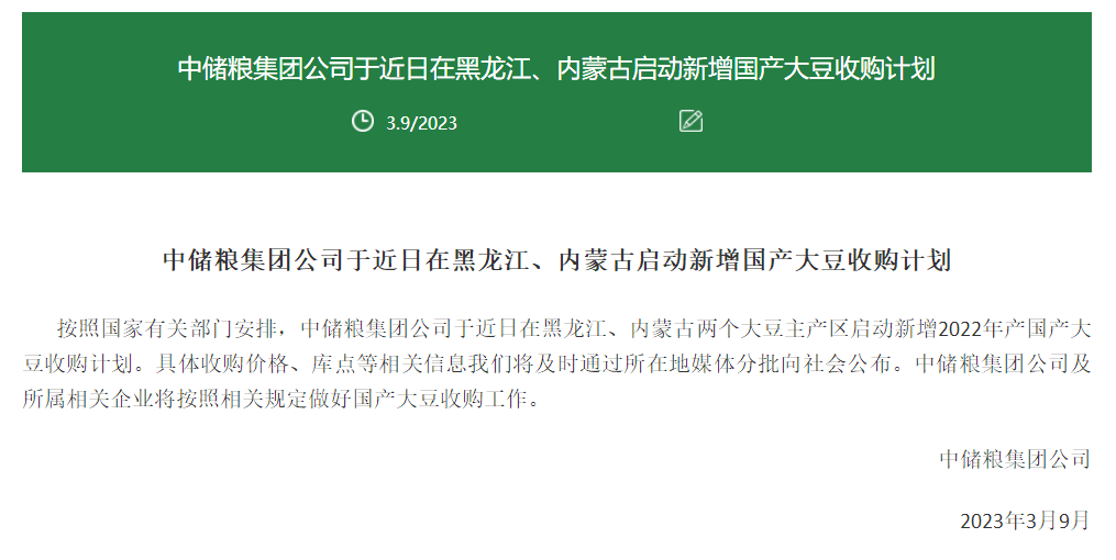 中储粮提价、不限蛋白含量收购国产大豆 业内:这释放了一个积极信号
