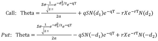 经过的时间] 。根据B-S模型,如果考虑股息支付,则Theta的具体计算公式为: