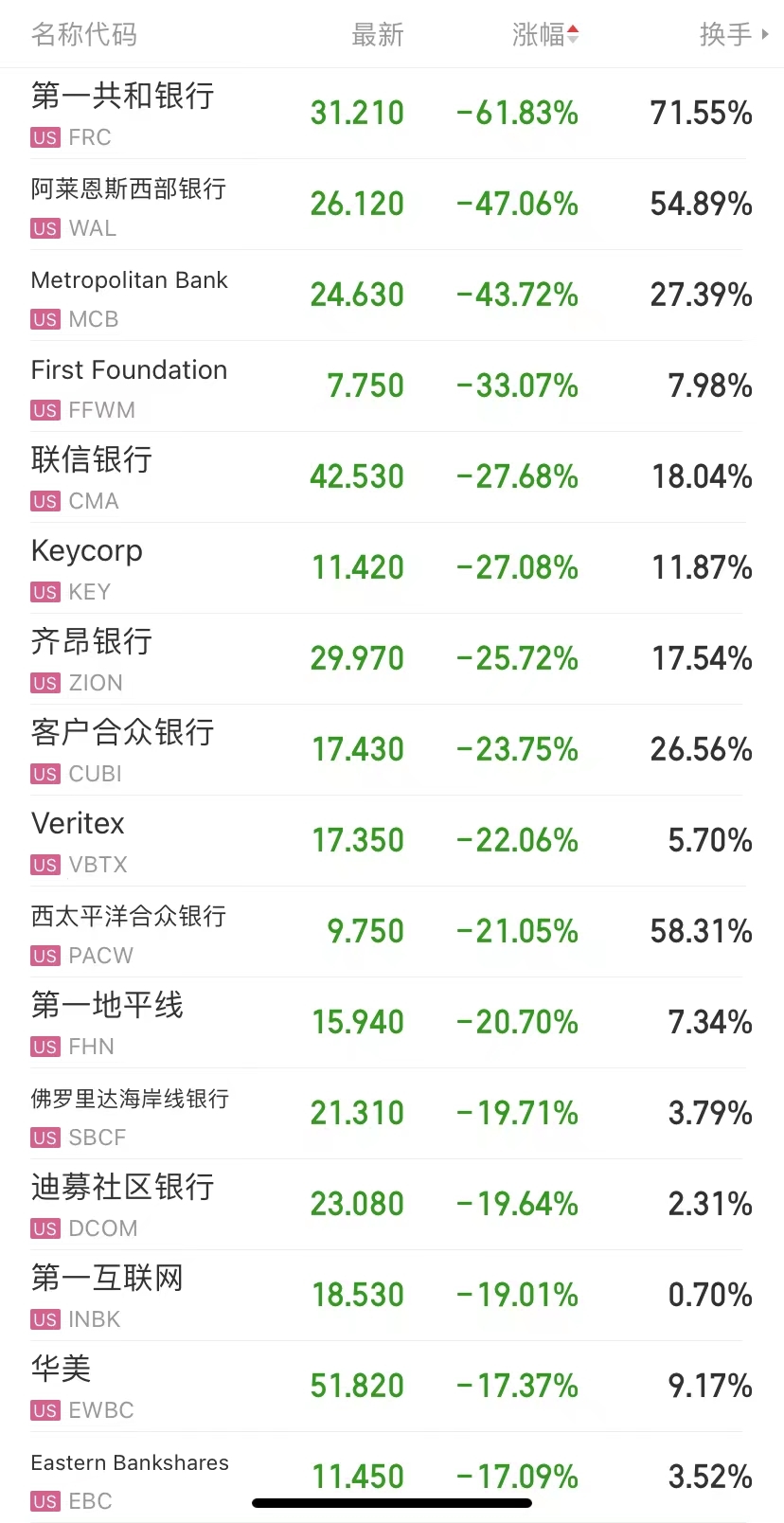 硅谷银行破产带来的恐慌情绪持续发酵,美东时间3月13日,美股市场银行股重挫,第一共和银行(FRC)收跌61.83%,报31.21美元,市值58.12亿美元。 阿莱恩斯西部银行跌超47%,夏威夷银行跌超18%。联信银行、客户合众银行等纷纷跟跌。 ![]() 民众担忧,美国第一共和银行储户排队取钱 在硅谷银行因资不抵债遭金融监管部门关闭后,有美国媒体分析认为,还有多家银行可能陷入类似的危机。 据央视财经,11日拍摄的一段画面显示,硅谷银行事件发生后,忧心忡忡的客户在美国第一共和银行位于加州的一处分行门前排队取钱。 ![]() 图片来源:央视财经视频截图 据证券时报,数据显示,截至2022年底,第一共和银行资产为2130亿美元,财富管理资产总额为2710亿美元。这一数额刚好低于多德-弗兰克法案全部适用的下限资产金额(2500亿美元),因此意味着第一共和银行所面临的监管要求相对宽松一些。据介绍,第一共和银行专门为“低风险、高资产人士”提供个性化服务。 第一共和银行3月12日晚间发布声明称,美联储、摩根大通等机构为银行提供的未动用流行性安排总计超过700亿美元,可是股市投资者对此似乎充耳不闻。许多人涌入美国和德国债券市场避险。根据第一共和的声明,美联储的新贷款工具可以为该行提供更多流动性。 股东起诉,美联储将调查硅谷银行 据美联储官网,美联储将调查其对硅谷银行的监管,并于5月1日发布调查结果;美联储主席鲍威尔表示,需要围绕硅谷银行这一事件展开迅速、深入的调查;美联储副主席巴尔将领导此次调查。 ![]() 图片来源:美联储官网 据财联社,硅谷银行首席执行官格雷格·贝克尔和首席财务官丹尼尔·贝克于当地时间13日被股东提出集体诉讼,指责他们“隐瞒利率上升将使硅谷银行‘特别容易’受到挤兑影响的事实”。 据报道,针对贝克尔和贝克的拟议集体诉讼已在加利福尼亚州圣何塞的联邦法院提交。还有美国媒体近日披露,上个月,包括贝克尔和贝克在内的硅谷银行多位高层出售银行股份套现。其中,贝克尔2月27日出售11%的股份,贝克同一天出售32%的股份。 此外,总法律顾问2月5日出售19%的股份,首席市场官2月1日出售25%的股份。 美国总统拜登连续喊话 据中国证券报,当地时间3月13日,美国总统拜登发表关于银行系统的讲话。 他表示,美国政府的迅速行动应该让美国人相信美国银行系统是安全的。美国联邦存款保险公司已经控制了签名银行的资产。美国纳税人不会承担任何损失,资金将来自保险基金费用。拜登还表示,需要对银行业发生的事情进行全面问责,将要求国会和监管机构加强银行监管。 上周末,拜登也发布声明表示,在其指示下,美国财政部长耶伦、白宫国家经济委员会主任布雷纳德与银行监管机构一起致力于解决硅谷银行和签名银行的问题,“我很高兴他们迅速达成了一项解决方案,保护了美国工作者和小型企业,并保持了美国金融体系的安全。这个解决方案还确保纳税人的钱不会面临风险。” 财政部长耶伦:银行系统“依旧坚韧” 在硅谷银行爆出亏损后,耶伦第一时间称,美国的银行系统“依旧坚韧”,监管机构“拥有有效的工具”来应对围绕硅谷银行的事态发展。随后,她于周日表示,她正在与银行业监管机构密切合作,以应对硅谷银行的倒闭并保护储户,但并未考虑大规模救助。不过她作出该表态不久后,情况出现了大转弯,大规模救助政策就出台了。 在美国财政部、美联储、联邦存款保险公司(FDIC)等机构的联合“救市”下,硅谷银行的储户可以暂时松一口气,从3月13日开始,储户可以支取他们所有的资金。 三天内美国两家银行宣告关闭,美国高利率环境为主因 据央视新闻,当地时间3月12日,美国财政部、美联储和美国联邦储蓄保险公司发表联合声明宣布,因“系统性风险”,美国签名银行当天被纽约州金融服务局关闭。这是继硅谷银行后三天内被关闭的第二家美国银行。美国相继发生银行被关闭事件,迫使美联邦政府紧急出手,防止“多米诺效应”冲垮金融业乃至波及整个经济。 ![]() 图片来源:央视新闻 值得注意的是,硅谷银行被关闭凸显美联储激进加息的负面影响。前几年,美国初创企业吸引大量风险投资,加上美联储维持超低利率,硅谷银行赚得盆满钵满。然而,为应对高位通货膨胀,美联储去年以来多次激进加息,加之近期美国技术产业大幅裁员、技术股承受打击、风险投资减少,初创企业纷纷提取存款,在这种背景下,硅谷银行并没有做好准备,导致眼下的困境。 有分析人士表示,硅谷银行被关闭的基础原因,也就是加息后的高利率会不会导致更多银行出现问题,依然没有确定答案。 离岸人民币一度大涨1000点 据中国基金报,硅谷银行的破产,导致全球央行加息预期急剧降温!其中高盛不再认为美联储有理由在下周的会议上加息,理由是金融部门“近期面临压力”。 经济学家穆罕默德·埃里安 (Mohammed El-Erian) 在 CNBC 的“ Squawk Box ”节目中表示:“当你踩刹车时,你会面临经济和金融事故的风险,而我们刚刚经历了一场金融事故。”他指的是美联储激进的紧缩政策。 甚至,美联储利率掉期预计美联储将在年底前降息50个基点。联邦基金期货市场一致预期:美联储加息将止步于(4.75%),今年下半年开始降息! 不加息甚至降息的预期一来,美元指数下跌,离岸人民币一度大涨1000点。 在硅谷银行倒闭以及随后政府对银行体系的支持