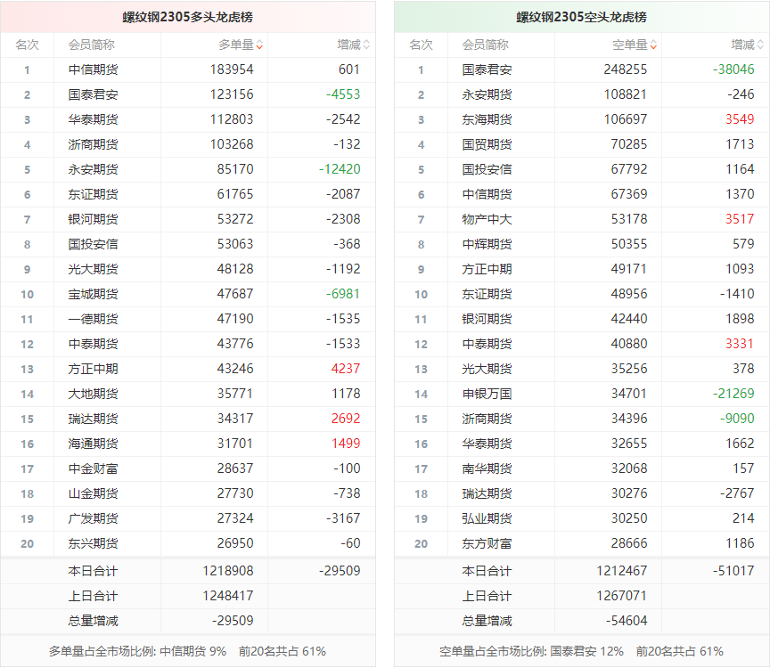 黑色持仓龙虎榜:螺纹钢涨0.51% 国泰君安期货减持超3.8万手螺纹空单