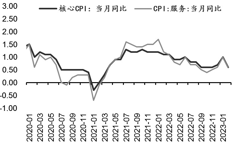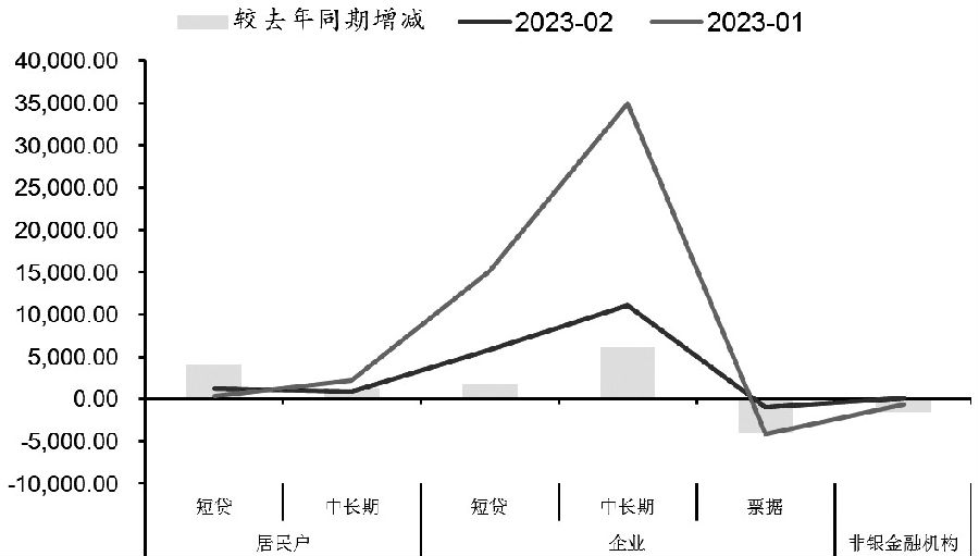 图为核心通胀和服务通胀变化 其一,重磅政策信息落地,市场对经济预期重新定位。全国两会前市场对于今年经济增长仍然抱有较强预期,长端利率受到压制难以进一步突破,但3月5日政府工作报告明确今年各项经济目标均未超出预期,其中GDP目标为5%,低于前期预期;财政赤字和专项债规模小幅上升,显示政策力度较为温和,均给市场吃下定心丸。之后陆续公布的外贸和通胀数据也表明,当前需求相对疲弱,前期受基本面强预期压制的买盘力量得到释放,推动十年国债期货主力T2306合约重回100点上方。 其二,货币政策存在进一步发力意愿,债券收益率还有下行空间。上周五社融数据公布后债券市场反应平平,一方面是市场在年初就已对一季度信贷“开门红”有了充分预期,现在社融数据的利空影响有限;另一方面是2月金融数据在结构上没有出现明显改善,货币政策仍有发力空间,债券收益率预计继续下行。 具体来看,2月信贷数据显示当前国内信贷增长集中在受基建政策支撑的企业中长贷领域,同比多增6048亿元是最大贡献,而对应房地产需求的居民中长贷改善程度有限。虽然居民中长贷在2月同比转为正增长,为近一年来首次,但很大程度上受到春节错位的影响,且环比来看再度转跌,与地产销售高频数据在2月好转背离。由于央行公布的贷款数据等于实际新增贷款减去已还贷款,这意味着居民房贷还款倾向还在延续,说明居民扩张杠杆、释放储蓄的意愿偏低,实体资金的活跃度较弱,2月M1再度走低以及M2与M1剪刀差走高便是对此的印证。在全社会信用扩张仍偏疲弱的背景下,央行货币政策存在进一步发力来激活实体消费和投资的意愿,债券收益率还有下行空间。