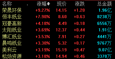 造纸板块震荡走高 部分纸种每吨提价1000元