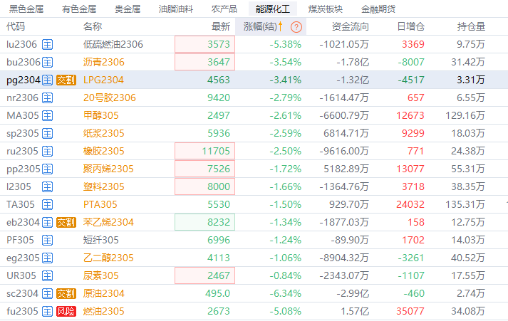 原油系期货主力合约持续下挫 SC原油跌超6%