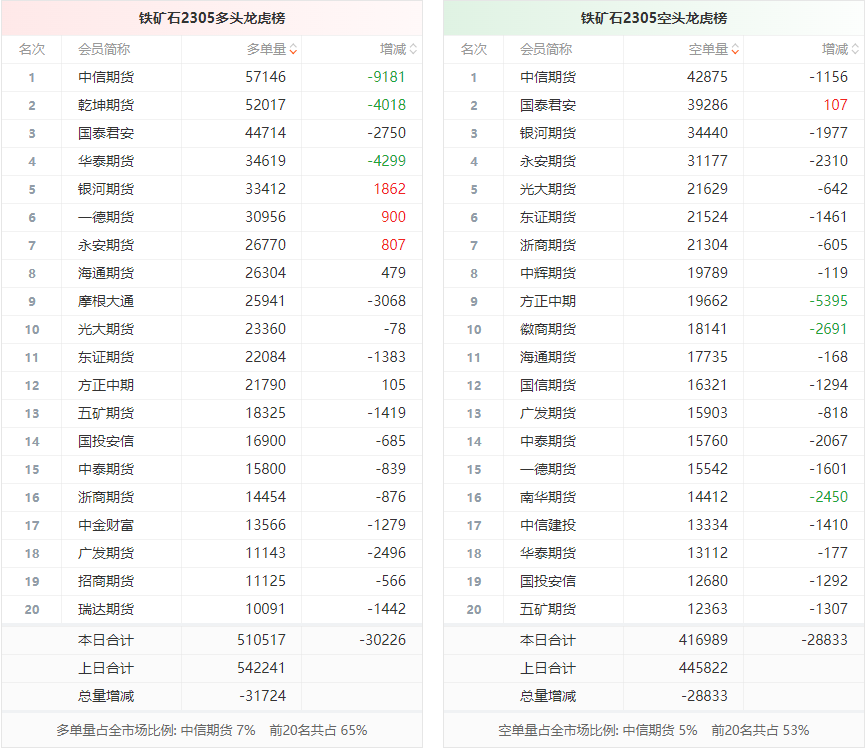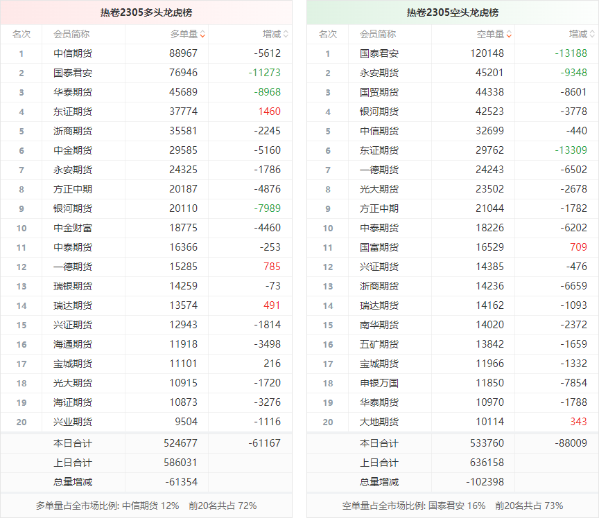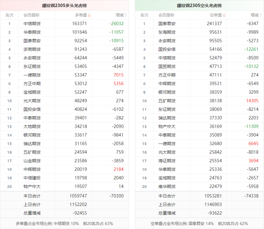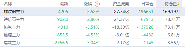 黑色持仓龙虎榜:螺纹钢跌3.53% 中信期货减持超2.6万手螺纹多单