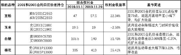 表为农产品期权2001合约和2005合约的日历价差表现