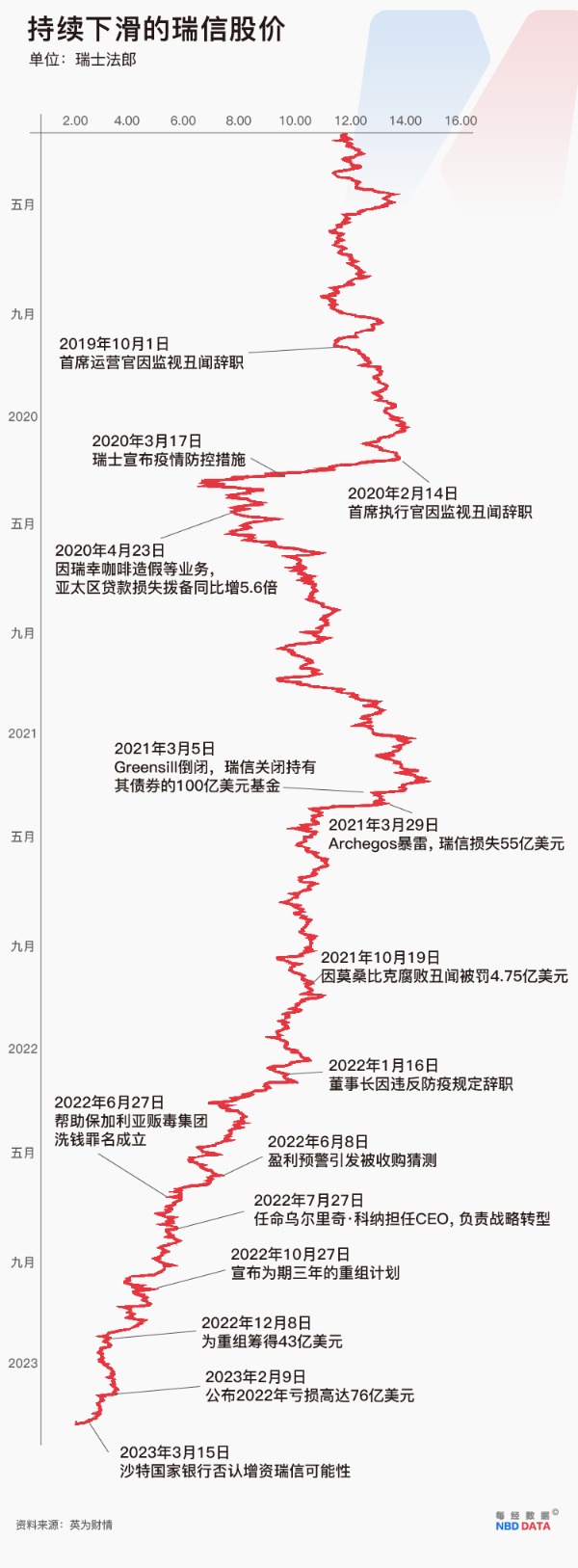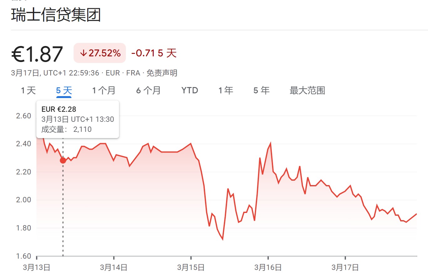 赶在周一亚市开盘前,瑞士政府的撮合终成正果。在政府提供流动性援助并提出可兜底部分损失后,经过一波三折的讨价还价,瑞士信贷(瑞信)终于和国内另一银行巨头瑞银达成历史性的收购协议。 当地时间3月19日周日,瑞银宣布将收购瑞信,透露这是一宗全股票收购交易,每持有22.48股瑞信股份的股东将获得1股瑞银股份,相当于每股0.76瑞士法郎(瑞郎),总对价30亿瑞郎(约合32.5亿美元)。30亿瑞郎的收购价较瑞信最近一个交易日周五的市值打了大概四折。以周五收盘价估算,瑞信的市值约为74亿瑞郎。 据央视新闻3月20日报道,瑞士金融市场监管局当天宣布批准瑞银与瑞信的合并,表示此举有利于金融稳定。瑞士央行表示,这一收购是在瑞士政府、瑞士央行及瑞士金融市场监管局的支持下实现的,瑞士央行将为合并提供大量流动性援助。 合并后总投资资产超5万亿美元 据瑞士央行官网消息,瑞银这次收购得到了瑞士联邦政府、瑞士金融市场监管局(FINMA)和瑞士国家银行的支持。两家银行都可以无限制地使用SNB现有的设施获得流动性。根据联邦委员会的紧急法令,SNB可以向瑞士信贷提供一笔最高可达1000亿瑞郎的流动性援助贷款,并由联邦担保。该贷款的结构基于公共流动性后备(PLB),其主要参数已于2022年由联邦委员会决定。 瑞银称,与瑞信合并后,瑞银现任董事长Colm Kelleher和CEO Ralph Hamers将各自在新公司担任同一职位。合并后公司的总投资资产将超过5万亿美元,预计到2027年,合并将让公司年度成本削减超过80亿美元。 瑞银官宣的同时,周日瑞士政府宣布,为帮助瑞银接管瑞信资产,将提供最高90亿瑞郎的损失担保。具体来说,假设瑞信的投资组合产生损失,瑞银将承担前50亿瑞郎的损失,瑞士政府承担此后的90亿瑞郎,再有任何进一步的损失将由瑞银承担。 SNB称,瑞士联邦政府、国内金融市场监管局(FINMA)和央行的支持下,此次收购成为可能。这一救助将“确保金融稳定,并保护瑞士的经济”。 FINMA周日称,在瑞士政府支持瑞银收购瑞信后,面值约160亿瑞郎(约合172亿美元)的瑞信Additional Tier 1债券将被完全减记。这意味着,为确保私人投资者帮助承担成本,这些面值的债券将变得一文不值。 FINMA还为政府出手解释说,即使仍有偿付能力,瑞信也有可能变得缺乏流动性,所以政府有必要采取行动。 在当地时间周日晚宣布给予流动性支援后,瑞士央行行长Thomas Jordan在新闻发布会上表示,鉴于瑞信是一家具有系统重要性的银行,“我们绝对有必要迅速采取行动,并尽快找到解决方案”。 据美联储网站,加拿大银行、英国银行、日本银行、欧洲央行、美联储和瑞士国家银行今天(当地时间3月19日)宣布采取协调行动,通过现有的美元流动性互换安排加强流动性提供。 为了提高互换线在提供美元资金方面的有效性,目前提供美元业务的央行已同意将7天期限业务的频率从每周一次增加到每天一次。这些每日业务将于2023年3月20日星期一开始,并至少持续到4月底。 近年的表现是一场缓慢车祸 瑞士信贷银行成立于1856年,在全球资本市场具有重要影响力。据悉,瑞士信贷成立于1856年,有167年历史,总部设在瑞士苏黎世,是全球第五大财团,瑞士第二大银行。2022年,入选《财富》世界500强排行榜,位列第494位。今年2月,瑞信宣布2022年净亏损73亿瑞士法郎,连续第二年净亏损。3月14日,瑞信发布报告称,该行对财务报告的内部控制存在“重大缺陷”。 3月16日,深陷危机的瑞信在得到瑞士央行获得了500亿瑞士法郎的流动性支持后,当日欧股盘中盘中一度反弹40%,收涨近20%,但涨势并未持续多久,17日收盘瑞信再次大跌8%。本周,这家瑞士第二大银行的股价累计下跌26.1%。 ![]() 图片来源:谷歌财经 据每日经济新闻3月18日报道,“瑞信的毛病多年不改,或者说改得不到位,那么被并购或者股东层面的重组就是可以考虑的现实选项了。”上海交通大学上海高级金融学院教授胡捷对记者表示。他分析指出,瑞信最近四五年来一直处于“病怏怏”的状态,各种麻烦和丑闻不断,最近财报又显示巨额亏损和内控漏洞的问题,而在硅谷银行倒闭引发市场情绪极度紧张之际,一点风吹草动就可以引发股价的暴跌。 3月15日,瑞信第一大股东沙特国家银行(持股9.9%)总裁库达里当日表示,沙特国家银行“绝对不会”增加对瑞信的持股。虽然他强调原因是不想突破10%的持股门槛而面临更多监管机制,但这句话还是立刻点燃了市场的恐慌情绪,瑞信当日收跌24%,创下史上最高单日跌幅,带动欧洲银行股超600亿美元的市值蒸发。 胡捷对每经记者表示,库达里的话有被断章取义之嫌,因为实际上在08年金融危机之后,欧美对银行业的监管力度大大增强,每年还会进行压力测试,而瑞信的流动性和资本都是符合监管要求的。 在这场危机之前,瑞信已经因连续的经营失策和合规丑闻中而苦苦挣扎了数年,最高管理层几经变更,成为欧洲大银行中最薄弱的一环,美国电视新闻网(CNN)直言其近年来的表现是一场“缓慢的车祸”。 经营方面,2020年,瑞幸咖啡造假事件曝光,作为瑞幸上市的主要承销商之一,瑞信的声誉受损。2021年,瑞信更是连续遭到暴击,先是供应链金融公司Greensill Capital倒闭,致使瑞信持有其债券的100亿美元基金遭冻结,随后Bill Hwang旗下基金Archegos爆仓引发“人类历史上最大单日亏损”,瑞信损失约55亿美元。 丑闻方面,2019年爆出的瑞信跟踪监视高管