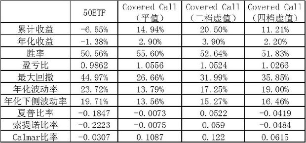 表为期权备兑策略绩效