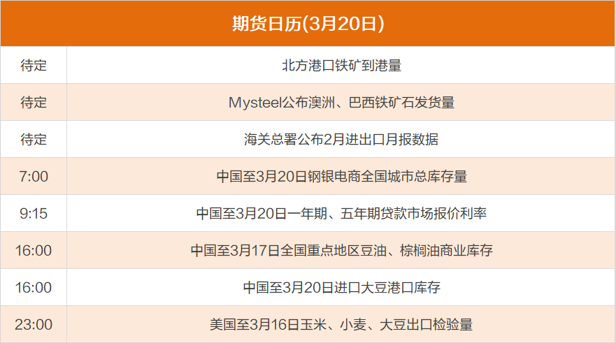 东方财富期货财经早餐 3月20日周一