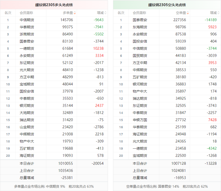 黑色持仓龙虎榜:螺纹钢跌0.94% 国泰君安期货减持超1.4万手螺纹空单