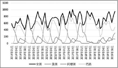 2019年12月阿根廷大豆进口量约为130.5万吨,为2013年来同期最高。2019年全年我国累计进口阿根廷大豆约879.1万吨,该数据远高于2018年的146.4万吨,仅次于2015年的893.7万吨。
