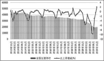 目前生猪及能繁母猪存栏数据已出现明显回升。农业部数据显示,截至2019年12月,能繁母猪存栏量环比增长2.2%,连续三个月环比增长,全国生猪存栏量环比大幅上升14.1%。当前生猪行业已有好转迹象,但此前受猪瘟影响缺口较大,恢复仍需时间。