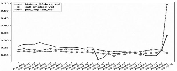 一般而言,当品种出现涨跌停时,波动率单日改变都处于较大水平。比如,从2月3日跌停的5个品种来看,铁矿石平值看跌期权隐含波动率为51.67%;橡胶平值看跌期权隐含波动率为26.10%;棉花平值看跌期权隐含波动率为36.65%;PTA平值看跌期权隐含波动率为36.58%;甲醇平值看跌期权隐含波动率为35.41%。从数据来看,各品种隐含波动率都处于较高水平,尤其是铁矿石、PTA和甲醇期权。