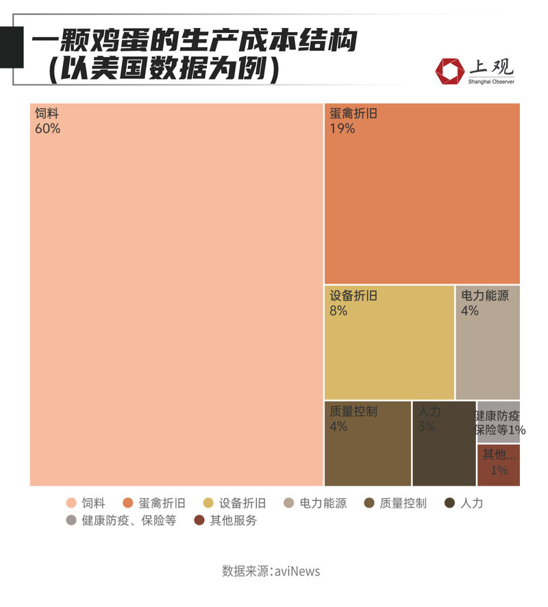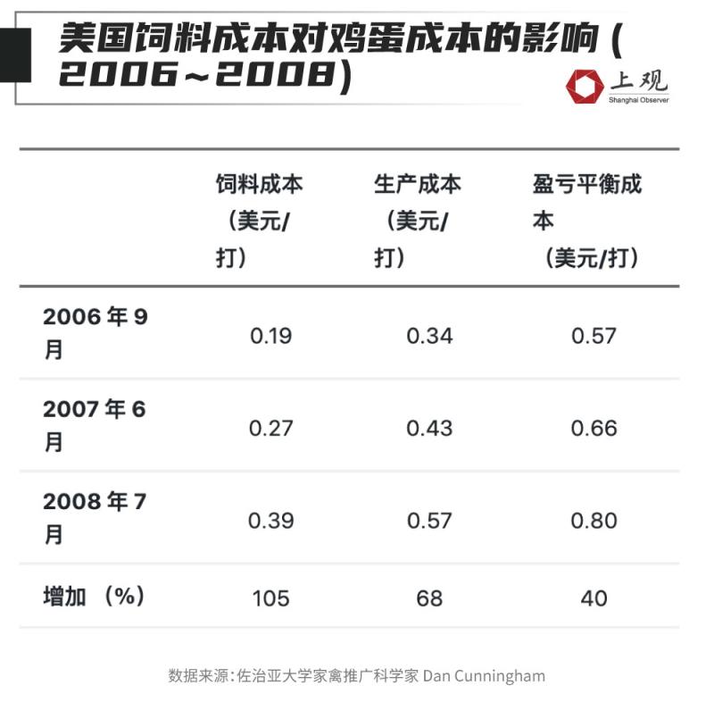 都2023年了,全球各地的民众突然发现,快吃不起鸡蛋了。 在日本,麦当劳春季传统商品“照烧鸡蛋堡”(TeritamaMuffin)从菜单上消失了; 在美国,出现了“租鸡生蛋”业务,3只成年母鸡的租金达到了175美元; 在中国台湾,一些连锁超市实施鸡蛋限购令,每人每次限购两盒; 在阿根廷,鸡蛋最近一周也成为涨价最快和涨幅最大的商品…… 为什么不同国家和地区的鸡蛋会同一时间段疯狂涨价? 哪个地方价格涨得最离谱 先来看看哪些地方的鸡蛋涨价最疯狂? 据美国劳工统计局显示,鸡蛋在今年1月价格涨至4.82美元/打的最高点,较去年同期上涨了150%,甚至高于当月一磅牛肉的单价(4.64美元/磅)。2月鸡蛋价格小幅回落至4.21美元/打,但仍处于绝对高位。 中国台湾的2月散装鸡蛋平均价达到90.37新台币(约合20元人民币)/公斤,同比去年增长了11%。尽管增幅不大,但台湾蛋价自2021年12月以来不断上涨,台北市蛋商业同业公会3月5日宣布,台湾地区蛋价已创历史新高。 日本去年11月全国平均鸡蛋零售价格为 228 日元,12 月为 236 日元,今年1月达到244日元。日本大型销售公司“JA全农鸡蛋”上周发布的数据显示,东京地区中号鸡蛋批发价为每公斤327日元,较去年同期水平上涨了86%。3月16日,东京地区每公斤蛋价更是来到345日元(约人民币18元),创1993年以来新纪录。 在欧洲地区,根据英国《泰晤士报》报道,英国多家大型连锁超市目前鸡蛋短缺,鸡蛋价格上涨了70%。据《布鲁塞尔时报》3月9日报道,比利时目前一个鸡蛋的平均价格为16.37欧分,环比上周价格上涨了3%,较去年同期更是上涨了134%。 都是创纪录,为了便于大家比较,我们计算了各国一个鸡蛋的价格,就会发现英国是比较贵的,折合2.7元一个,这几乎是中国鸡蛋价格的5倍——这个价格有多离谱呢?英国麦当劳的吉士汉堡大概也就10块钱左右。如果和一年前的价格比,涨的最凶的是比利时,翻了一倍还多。美国的鸡蛋价格也翻了一倍。 ![]() 高通胀并不足以造成鸡蛋价格如此飞涨 高通胀下的养殖成本上升,是对鸡蛋价格上涨的一个常见解释。 不同国家和地区的养殖系统存在差异,但大致上都会包括玉米、大豆等饲料成本、雏鸡/鸡苗摊销成本、保持适宜温度的取暖用电成本和人力成本,这几部分占到成本的90%。尤其是饲料成本占到大头。在美国,饲料成本占到鸡蛋生产成本的60%左右。 ![]() 受能源危机的影响,玉米、大豆和能源成本都显著上升。 美国农业部数据显示,2022 年玉米和大豆的平均价格分别上涨 18.9% 和 13%。 ![]() 能源价格也在2022年达到创纪录水平。柴油和汽油平均价格为每加仑4.99美元和每加仑3.95美元,分别比2021年上涨51.8%和31.4%。 不过,通胀不足以解释鸡蛋为什么是所有商品、服务中涨势最大的。根据历史数据,占成本大头的饲料成本对鸡蛋的成本涨幅影响也并没有想象的那么大。 在2006年9月到2008年7月,美国曾经经历过一轮玉米等作物的价格上涨。家禽专家研究发现,在那一时期饲料原料成本涨价105%的情况下,鸡蛋的生产成本和盈亏平衡成本分别上涨68%和40%。 ![]() 而过去一年大豆、玉米的原料成本涨幅在20%以下,与上述的历史涨幅还存在较大差距。 肆虐的禽流感对蛋价上涨贡献更高 大规模的禽流感导致蛋鸡减少,可能是今年情况更特殊的原因。 去年以来,在禽流感的肆虐下,各国扑杀的家禽数量创下纪录。 这还要追溯到2021年下半年,一种高致病性禽流感在欧洲开始暴发。欧洲疾病预防控制中心数据显示,整个欧洲遭遇了迄今为止规模最大的高致病性禽流感 (HPAI) 流行季。 与此前禽流感疫情相比较为特殊的是,此次禽流感感染大量野鸟将病毒传播到更广范围,引发北美、日韩、台湾等地也相继暴发禽流感。 由于对疫苗使用的抵触,扑杀和隔离家禽是海外地区最常见的应对禽流感的手段。而这波疫情期间,各地扑杀的家禽数量都纷纷破了历史记录。 2021年10月至2022年9月期间,欧洲共扑杀了4770万只禽类。日本从去年10月份以来累计扑杀1612万只家禽,超出2020年秋季至2021年春季历史最严重的禽流感疫情期间扑杀数量——当时日本累计扑杀987万只家禽。美国自2022年以来累计扑杀了5800万只家禽,其中包括4400万只蛋鸡,整体数据已经超过2015年暴发的禽流感期间的5050万只。 ![]() 根据世界动物卫生组织的数据,自2021年10月以来,禽流感以及相关的扑杀在全球范围内已导致1.4亿只家禽死亡。 据美国农业部称,美国上一次影响比较严重的禽流感发生在2014-2015年,当时疫情期间损失了12%的蛋鸡。美国食品行业分析机构统计发现,蛋鸡数每减少1%,价格就上涨6%到8%。2015年8月份的月度价格涨幅最高,达到110%,那时的蛋鸡也比去年同月低近10%。 农业部数据显示,美国的蛋鸡数量自2022年2月-12月连续下滑,同比下降幅度最高达到6%。12月的蛋鸡数量与去年同期相比减少了约5.8%,如果按照2014-2015年蛋鸡数对价格上涨的影响进行估计,仅是12月蛋鸡数量的下滑,可能就对鸡蛋价格的上涨贡献了35%-47%。 ![]() 国内鸡蛋价格基本正常 国内鸡蛋价格也有所上涨,但相对全球其他地区涨幅较小。 在去年10-11月,我国鸡蛋平均价最高在去年11月初达到13.57元/公斤的价格,同比增幅最大点则出现在10月中旬,较去年同期增长了22%。最新数据显示,今年3月第二周鸡蛋平均价在11.6元/公斤,同比增幅为14%。 ![]() 据养殖户介绍,蛋鸡养殖最合适的温度在13-25摄氏度,因此春秋季鸡蛋产