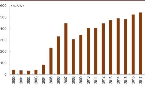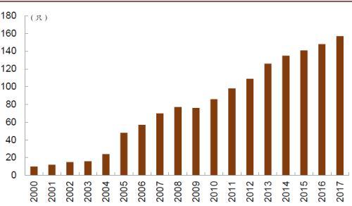 Greenwich于2018年的问卷调查显示,约有一半的资产管理人计划未来超配期权策略,而在养老金和捐赠基金中这一比例已达到16%。近年来,美国公募基金市场中基于期权的基金数量稳步上升;截至2017年底,相关产品总规模已达到约540亿美元,创下历史新高。