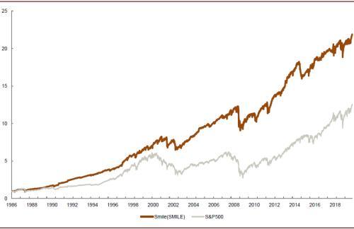 图表: 波动率微笑策略指数走势(1986 -2019年)