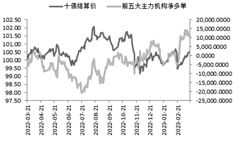 图为银行间市场不同期限债券质押式回购利率变化 其三,机构净多头寸持续增加的局面结束。2月底以来,十年期国债期货前五大主力机构从净空头寸转向净多头寸,反映出其对债市的偏多看法,但3月15日净多头寸出现本轮行情开启以来的最大日内降幅。另外,从主要席位的表现来看,上海东证期货席位的净持仓与行情走势较为吻合,但近期其净多头寸大幅下降,也意味着行情的持续性有待检验。