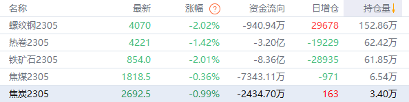 黑色持仓龙虎榜:螺纹钢跌2.02% 多头第一名增持近2.4万手螺纹空单