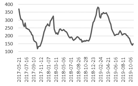 但随着猪价提高,养殖利润促进了养殖户的积极性,9月猪饲料产量环比出现10%的增长,且10月能繁母猪的数量逐渐开始由底部回升,意味着生猪养殖将在未来有所起色。国家粮油信息中心预计,2019年至2020年(10月至次年9月)我国玉米年度总消费量为2.75亿吨,同比增加0.7%,长期下游消费有望逐渐转好。