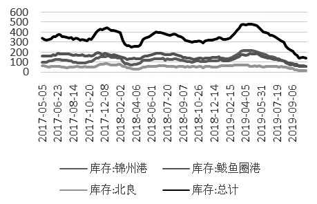 图为辽宁港口库存情况(单位:万吨)