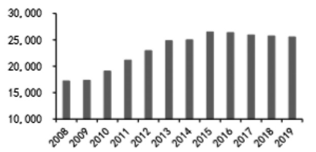 图为2008—2019年我国玉米产量(单位:万吨)