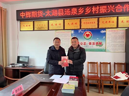 期货日报网讯(首席记者 谭亚敏)近日,在上海期货交易所牵头带领下,中辉期货有限公司与国贸期货有限公司共同前往太湖县牛镇镇及汤泉乡开展乡村振兴合作签约、党建共建活动和期货知识培训,考察2022年帮扶项目进展情况,并进行2023年新帮扶项目签约。中辉期货副总经理杨永军、国贸期货副总经理陈忠文、太湖县乡村振兴局副局长章华伟、牛镇镇党委副书记、镇长陈慧丰、汤泉乡党委副书记程洁琼参加了相关活动。 中辉期货与太湖县汤泉乡签署了乡村振兴工作合作协议、产业帮扶合作协议和党建共建合作协议,努力为汤泉乡巩固拓展脱贫攻坚成果同乡村振兴有效衔接添砖加瓦。