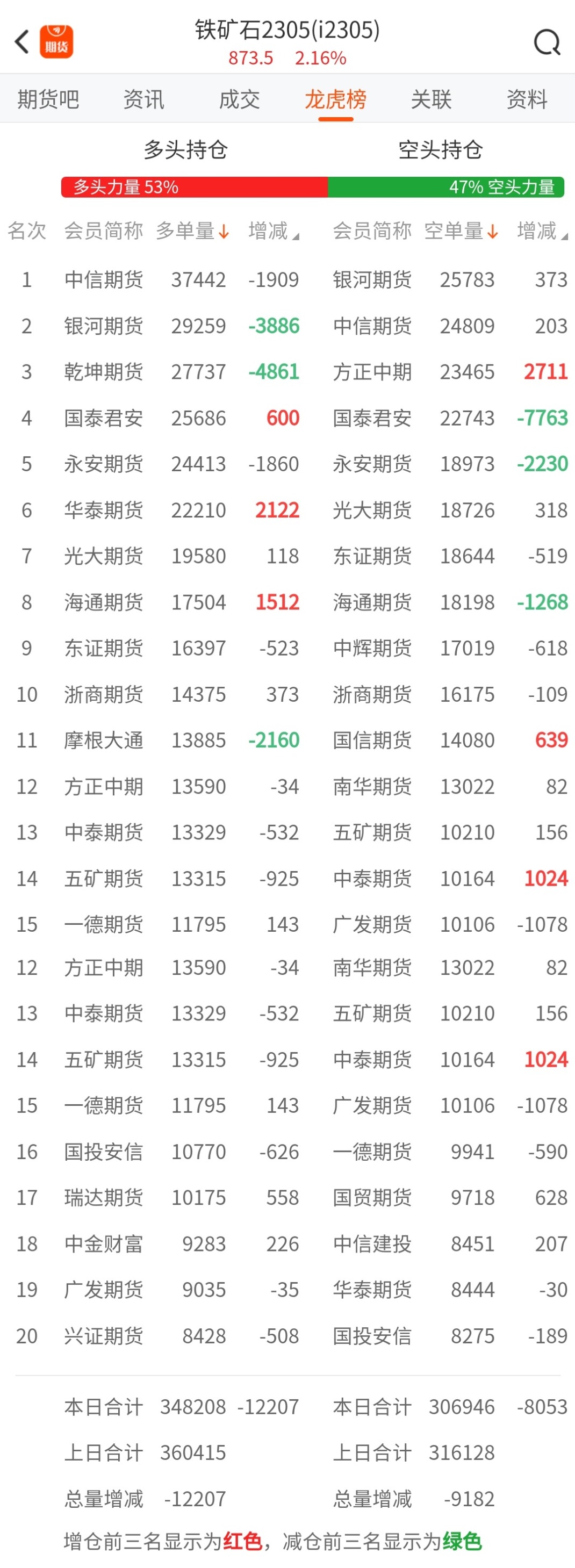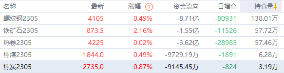 黑色持仓龙虎榜:铁矿石涨2.16% 空头第一名减持超2.3万手螺纹空单