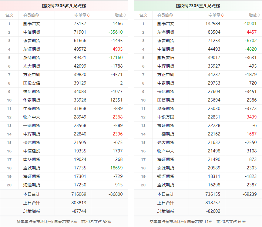 【螺纹钢龙虎榜透析】多空双方均成退场态势 多头退场意愿强于空头