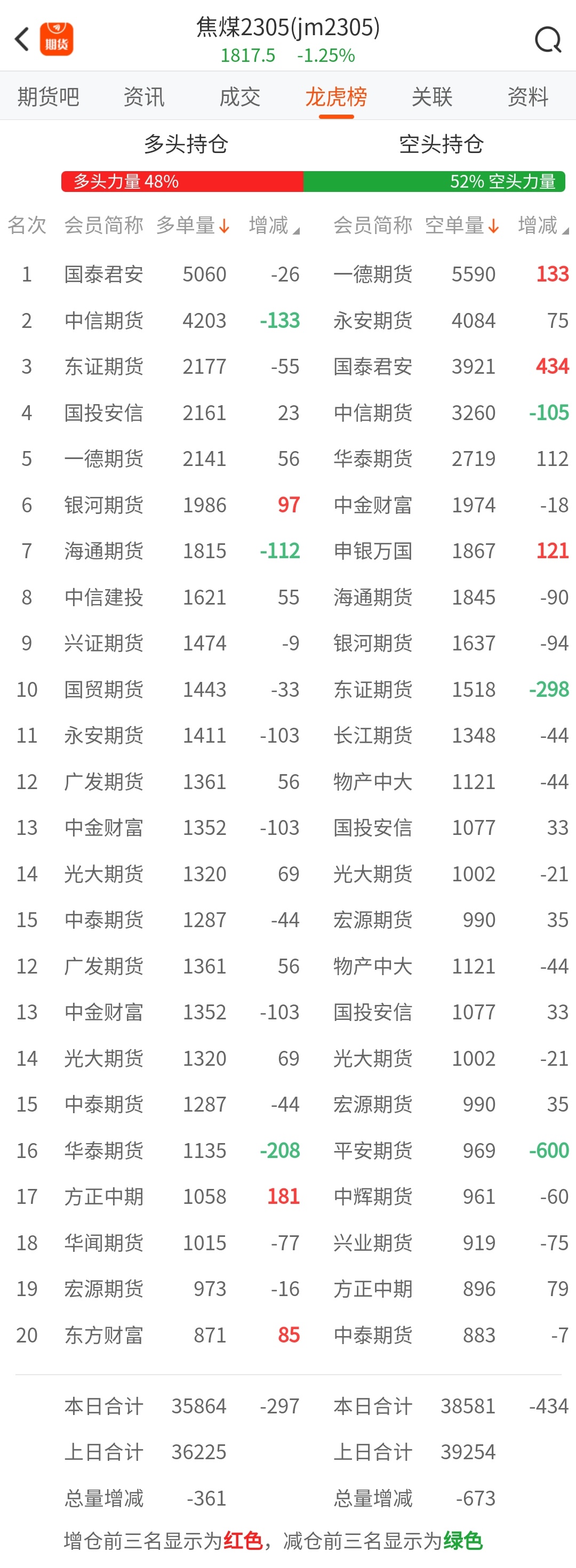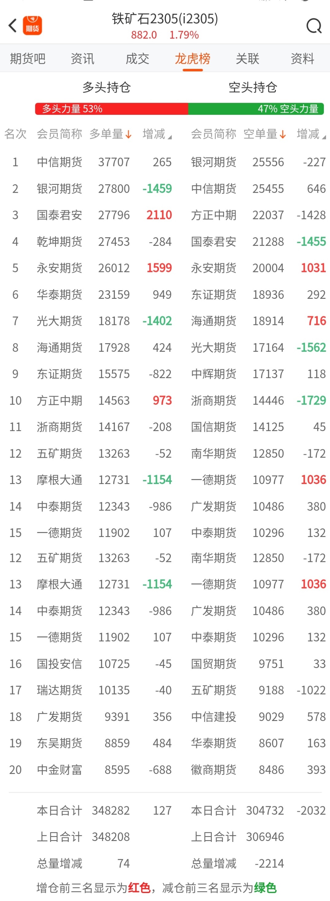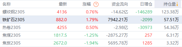 黑色持仓龙虎榜:铁矿石涨1.79% 空头第一名减持超4万手螺纹空单