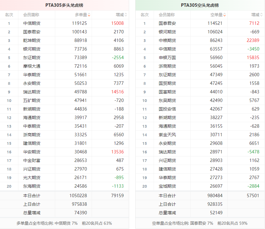 【PTA龙虎榜】多空双方均呈进场态势 多头进场意愿强于空头