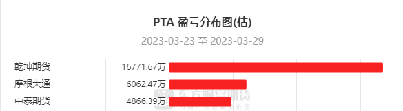 周三PTA主力合约收涨1.71%,收盘报6188元/吨。 当日持仓为1662706手,较前一交易日增加122502手。 日内资金流入6.30亿元。成为当日获得资金流入量最大的商品主力合约。 多空持仓:今日前20席多头持仓1050228手,共占全市场63%,其中多头第一名中信期货占全市场7%。 前20席空头持仓980484手,共占全市场59%,其中空头第一名国泰君安占全市场7%。 前20席整体呈净多69744手,较前一交易日的净多47503手增加22241手。 ![]() 净仓趋势:下图可以看出,前20席位净持仓一段时间内由空转多。 ![]() 持仓动向:就多头而言,今日前20席较前一日增仓79159手,其中中信期货、瑞达期货、华安期货增仓明显,三机构分别增仓15008手,14516手和13536手。 就空头而言,今日前20席较前一日增仓57501手,其中中粮期货、申银万国、国泰君安增仓明显,三机构分别增仓22389手,15835手和7112手。 ![]() 盈亏剖析:数据显示,一周内乾坤期货、摩根大通、中泰期货在PTA上盈利居前,三机构分别盈利16771.67万元,6062.47万元,4866.39万元。 ![]() 一周内国贸期货、东吴期货、银河期货在PTA上亏损居前,三机构分别亏损8090.19万元,6380.07万元,5925.03万元。 ![]() 同时下图可以看出,近几个月内永安期货席位净持仓与PTA305合约期价走势呈一定程度正相关。 ![]() 总体而言,PTA305合约今日增仓上行,多空持仓排名前20席中,多空双方均呈进场态势,多头进场意愿强于空头。 注:可通过点击东方财富期货PC端左侧“龙虎榜”栏目及东方财富期货APP行情页面“龙虎榜”栏目查看各类机构持仓及盈亏榜单信息。