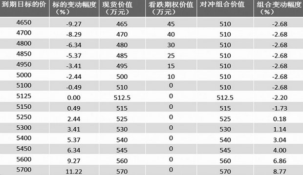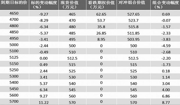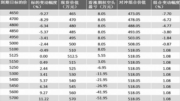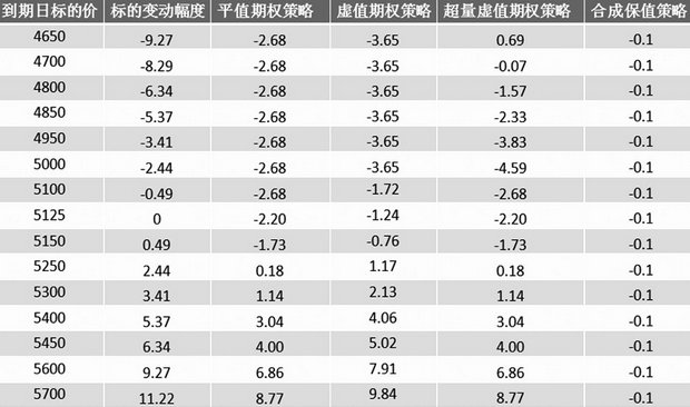 表2为不同执行价合成保值的情况