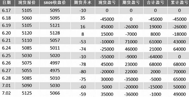 表1为白糖期货卖保的动态盈亏